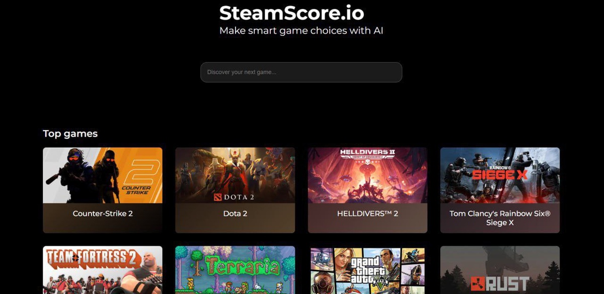 Состоялся релиз SteamScore — БЕСПЛАТНЫЙ сервис подбора игр с помощью ИИ