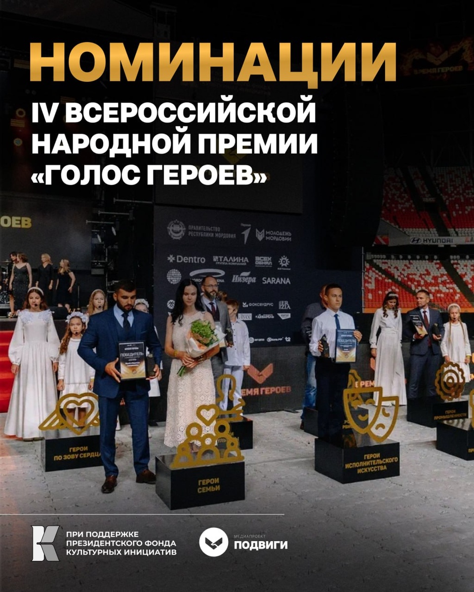 До 30 сентября принимаем заявки на IV Всероссийскую Народную премию «Голос героев» Наша премия – не только для тех, кто рисковал собой, чтобы спасти другого. Это способ на всю Россию похвалить себя (да, это нормально – хвалить себя!) или сказать спасибо родным, друзьям и коллегам за их честный и добросовестный труд, волонтёрство, активную жизненную позицию, воспитание детей. 30 номинаций, обязательно найдите свою: