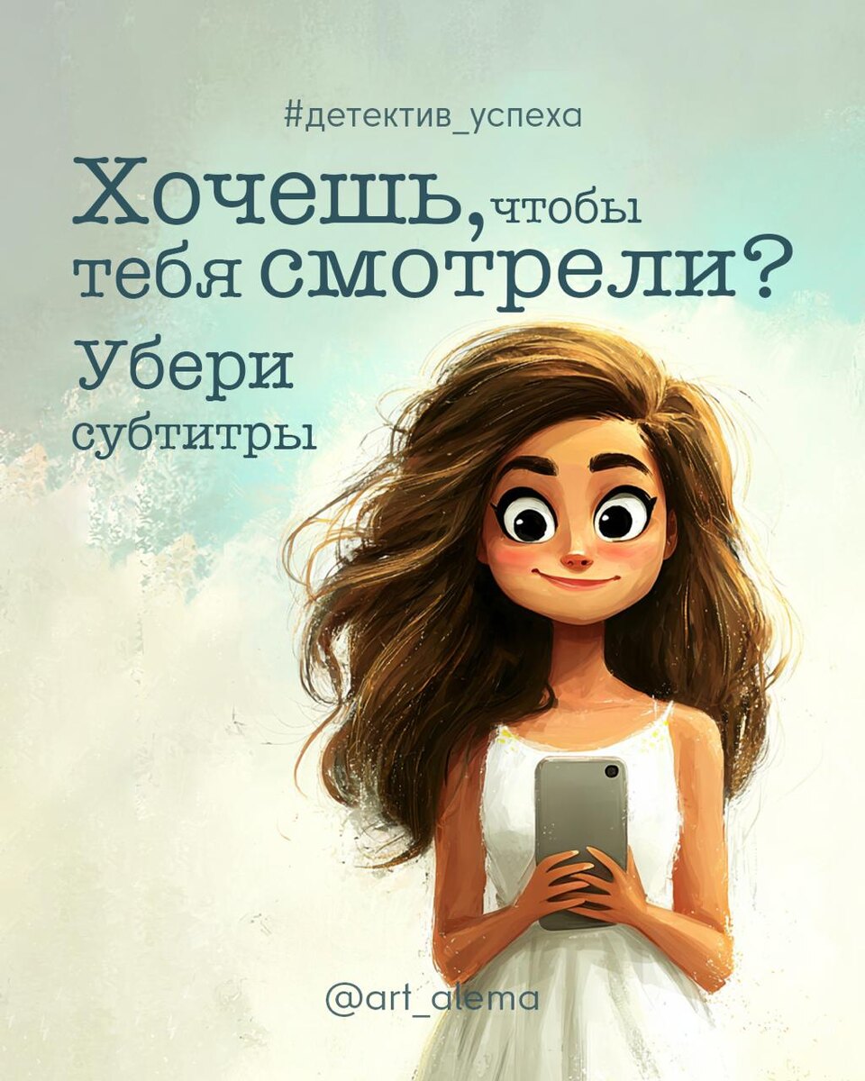 Субтитры в сторис — это треш (не важно где: Инста, ВК, Телеграм, Ватсап и т.д.) Вы записали говорящую голову на фронталку. Всё, видео готово. Но нет — надо ещё сесть, открыть какое-то приложение, потратить кучу времени, чтобы наложить авто субтитры и вычитать их. А потом уже и видео не хочется выкладывать, вроде старался, а сил нет. «Да ну нафиг», — оставлю на потом… А сторис живёт всего 24 часа. Оформление должно быть простым, живым, и главное — работать на вас. Не в тягость, а в удовольствие и доносить смысл для тех, кто смотрит. Вот как это должно работать: Сторис понятная → человек досматривает до конца → алгоритмы это видят → вы чаще попадаете к нему в ленту. А теперь внимание: большинство людей не досматривают сторис до конца. Мы все просто сканируем глазами контент, 10–15 секунд, всё, перелистнули дальше. А если наложить субтитры, то смысл видео раскрывается только в конце. И если человек не досмотрел, то он не понял, о чем вы говорите и вывалился из контекста. Вы потеряли е