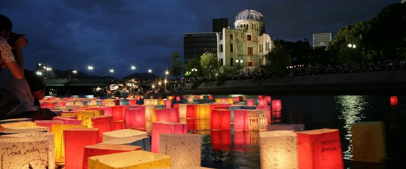 голубей. А в реке Мотоясу зажигают тысячи бумажных фонариков в память о