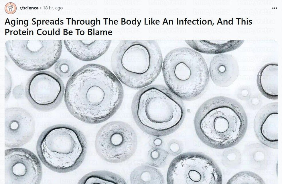 Учёные обнаружили, что старость — заразна и может распространяться по телу как «инфекция» за счёт белка HMGB1, который превращает здоровые