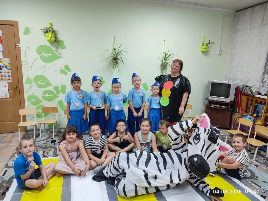 И, конечно же, какой же праздник без приятных сюрпризов! В конце познавательного часа к нам в гости заглянула сама Зебра, которая вручила всем ребятам заслуженные медали «Знаток правил дорожного движения»!