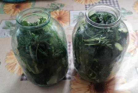 Очень вкусно получается маринованные огурцы с кабачками в морковной ботвой. Предлагаемый рецепт не сложный, требует немного ингредиентов и времени. Готовим необходимые ингредиенты. Простерилизуем заранее банки и прокипятим крышки. Огурчики замачиваем в холодной воде не менее 2 х часов. Так же моем морковную ботву. Стряхиваем лишнюю влагу. Можно еще добавить морковь, чеснок, лавровый лист по желанию. На дно банки выкладываем половину морковных листиков. Кабачки режем на кубики, у огурцов обрезаем кончики. Плотно выкладываем сначала кабачки затем огурцы в банку. А в конце закладываем вторую половину морковной ботвы. Содержимое банки заливаем кипятком. Прикрываем крышкой и оставляем остужаться до комнатной температуры. После остывание выливаем в кастрюлю и готовим маринад. После того как маринад закипит добавляем уксус и еще раз доводим до кипения. Маринад разливаем по банкам, банки закатываем, переворачиваем верх дном, укрываем одеялом, и оставляем остывать в таком виде. После тог