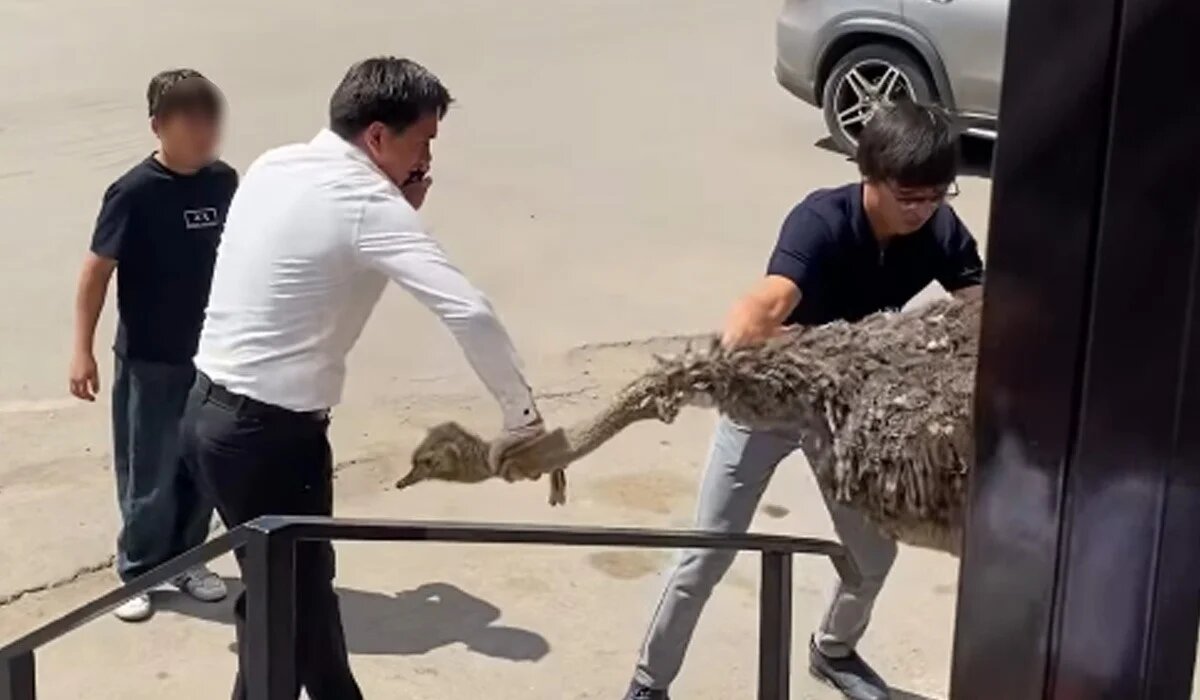 На скандальное видео с живым страусом у донерной в Астане отреагировали в полиции