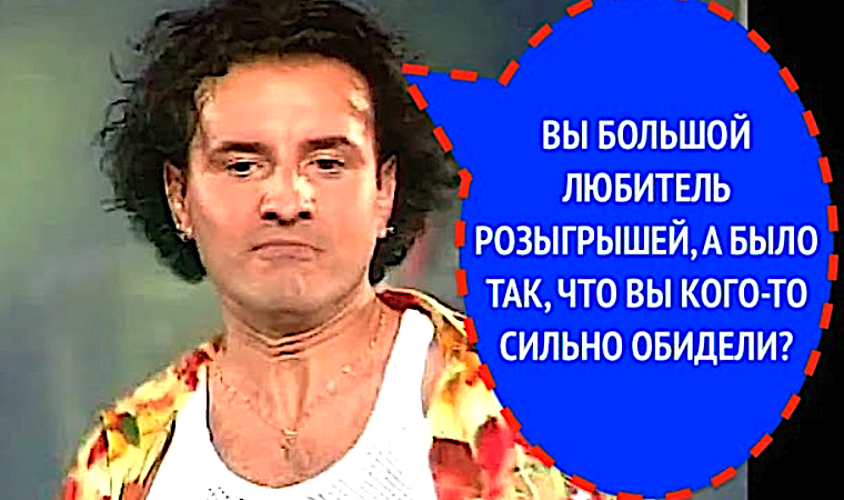 А вы знаете, человек, имеющий чувство юмора, он, собственно, не должен ни на что обижаться. Я вот даже думаю, что, как бы, обладая чувством юмора, можно не обижаться не только на розыгрыш, но и на нескромные вопросы, скажем так. Ответ в форме шутки — «Это моя голограмма» — уместен, если разговор ведётся легко. Но он прозвучал в контексте прямого, серьезного вопроса об ответственности. Шутка здесь — уход от содержания, избежание раскрытия себя. Вместо демонстрации самоиронии или саморефлексии — обезоруживающее легкомыслие. На вопрос: «Не боитесь кого-то обидеть розыгрышами?» — артист не отвечает прямо, а перекладывает ответственность на зрителя, мол: «человек с чу