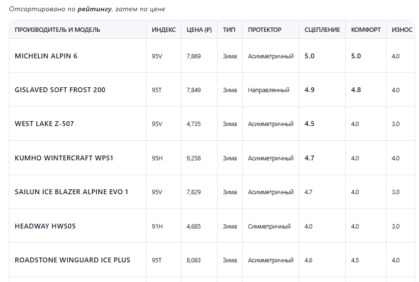 💬 Пример запроса: «Распознай текст с этого скриншота. Это список зимних шин. Приведи в виде таблицы: Производитель, Модель, Индекс, Цена, Примечания» Нейросеть привела всё к единому формату: 🔧 Затем я добавил: Запрос к ИИ: «Дополни таблицу: для каждой шины добавь оценку сцепления на льду (по 5-балльной шкале), комфорт, износостойкость, тип протектора, если не указано. Основывайся на тестах, отзывах и аналогах.» 🧠 Нейросеть: Получилась полная та