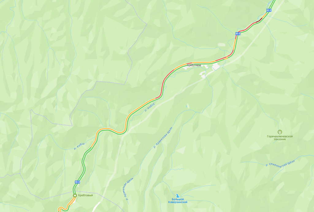 Серьезные затруднения в движении наблюдаются на федеральной трассе М-4 «Дон» в сторону побережья. С самого утра 6 августа в районе Горячего Ключа скопилось несколько километров автомобилей, следует из данных сервиса «Яндекс Карты». К восьми утра пробка протянулась почти на 3 километра: она начинается сразу после автозаправочной станции и заканчивается возле населенного пункта Заречье. Преодолеть этот участок можно примерно за 20 минут, но ситуация усложняется из-за идущего дорожного ремонта. Еще более протяженный затор возник у села Хребтового. По навигатору видно, что очередь машин тянется на 7 километров — от реки Кобза до территории Горячеключевского заказника. Время в пути через этот отрезок превышает полчаса. К 11:00 ситуация разрядилась, но пробки на трассе остаются. Автомобилистам рекомендуется заранее планировать маршрут и быть готовыми к задержкам.