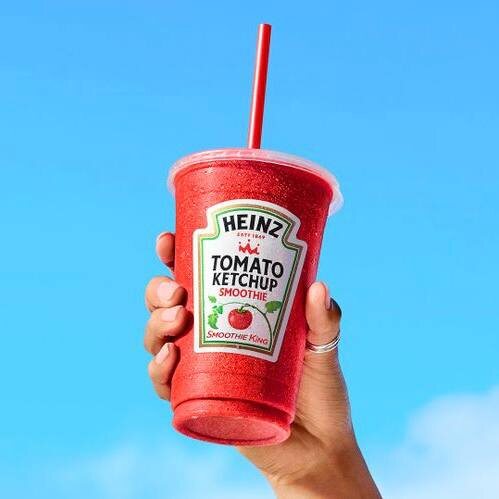В томатном смузи: сорбет асаи, клубника, малина, яблочный сок и фирменный кетчуп HEINZ.