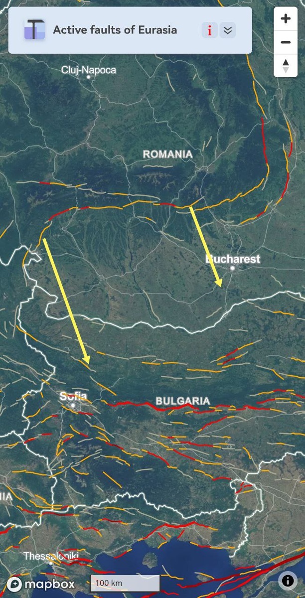 Также похоже, что на уровне М5-6 трассируется южная часть зоны Вранча со смещением на юго-восток