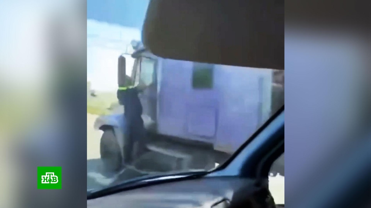 [ Смотреть видео на сайте НТВ ] В Тамбовской области задержан водитель фуры, который несколько километров вез сотрудника Ространснадзора на подножке грузовика. Об этом сообщила в Telegram официальный представитель МВД РФ Ирина Волк. Она рассказала, что сотрудник Ространснадзора хотел проверить документы водителя. Когда он поднялся на подножку кабины фуры, водитель неожиданно начал движение и проехал несколько километров. Ирина Волк отметила, что тем самым водитель подверг жизнь инспектора смертельной опасности. Инцидент был снят на видео из другой машины. Ролик был опубликован в Сети. Водителя задержали сотрудники Госавтоинспекции. На него составили несколько административных протоколов. Сотрудник Ростанснадзора не пострадал. [ Смотреть видео на сайте НТВ ]