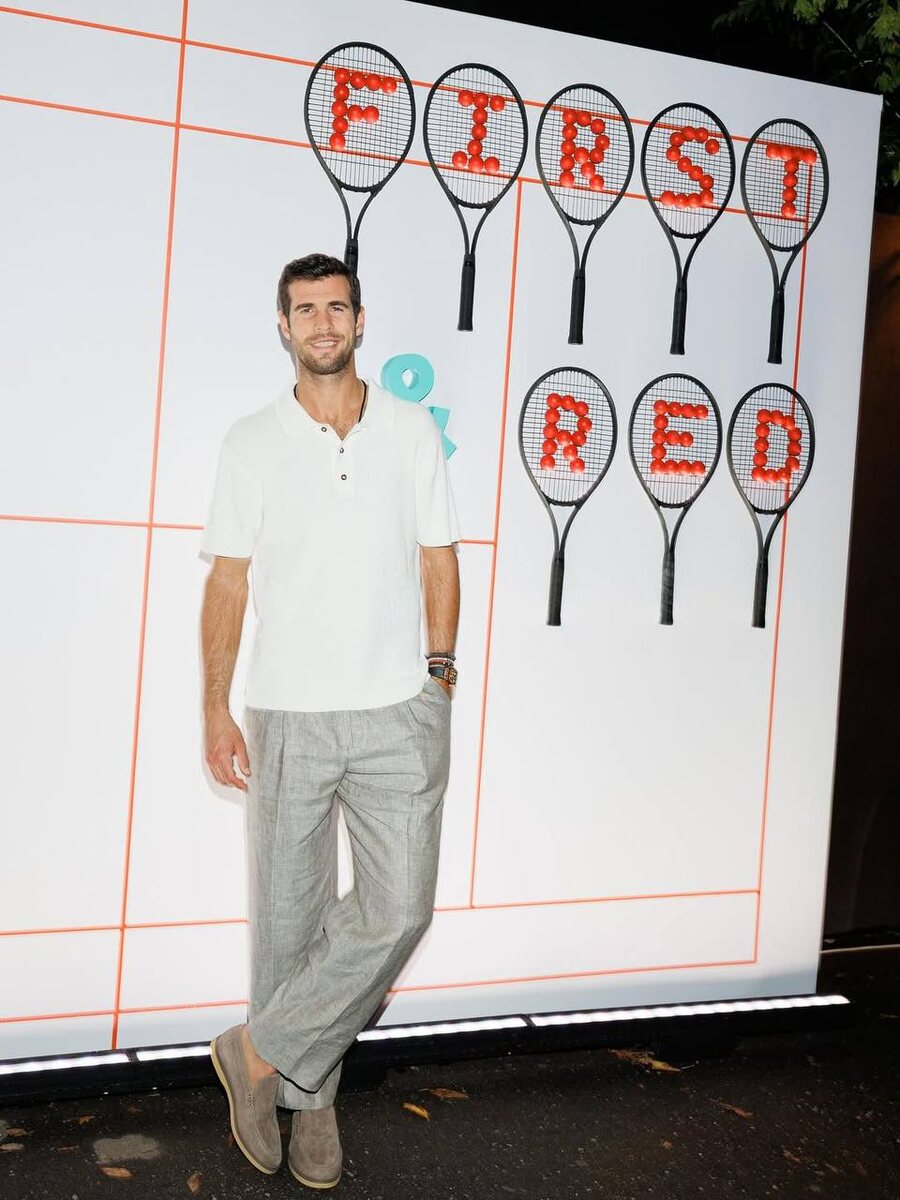 Выбор российского теннисиста и амбассадора мужской коллекции 12 STOREEZ Карена Хачанова: вязаное поло с мягкой текстурой, брюки из плотного льна и лоферы из замши