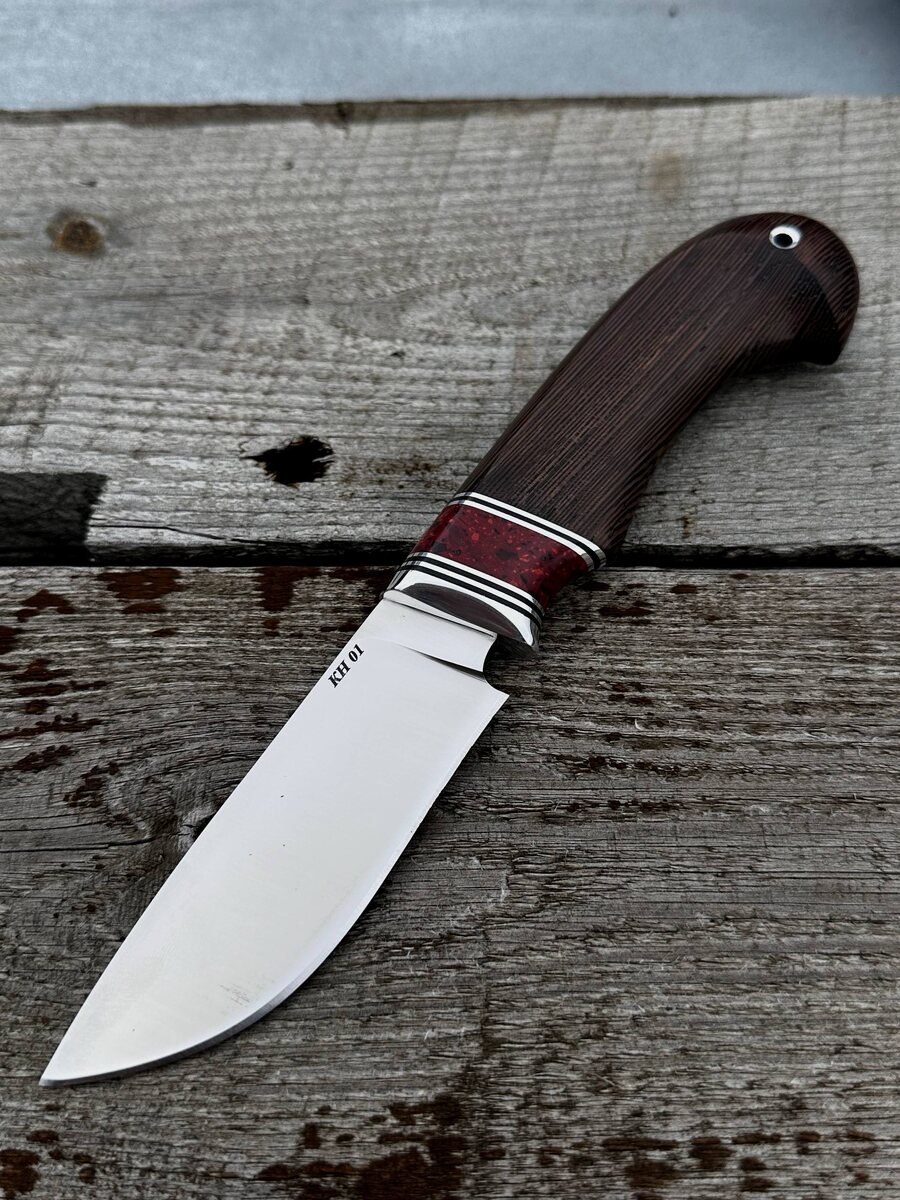 - Сталь КН-01 (70 HRC) — топовая отечественная сталь. *Долго держит заточку, выдерживает экстремальные нагрузки, уверенно режет и не ломается.*