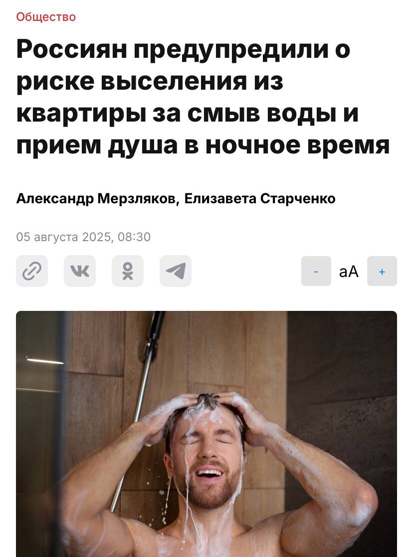 🇷🇺 Россиян смогут выселять из квартир за смыв унитаза или приём душа ночью.