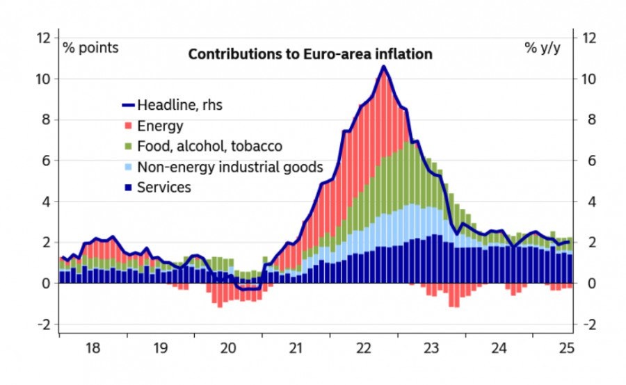 https://basechop.ru/wordpress/?p=52758 Инфляция в еврозоне близка к целевому уровню в 2% с марта, и июль не принёс никаких изменений в общую картину. Общая инфляция стабилизировалась на уровне 2,0% (прогноз 1,9%, предыдущее значение 2,0%), а базовая инфляция — на уровне 2,3% (прогноз 2,2%, предыдущее значение 2,3%). Влияющие на инфляцию факторы также стабильны, цены на услуги снижаются во всех крупных экономиках еврозоны. Прогноз стабильный – общая инфляция стабилизируется около 2% до конца года, базовая – около 2.3%. Определённое беспокойство вызывают перспективы повышенных тарифов на экспорт в США, данные по ВВП за 1 полугодие очень приличные и выше прогнозов ЕЦБ, во втором полугодии ожидается снижение потребительской уверенности и слабый рост производительности. С другой стороны, неопределенность стала существенно ниже. Угроза Трампа вновь поднять пошлины до 35% в случае, если ЕС не начнет обещанные инвестиции в экономику США, пока выглядит слишком неопределенной, поскольку в…