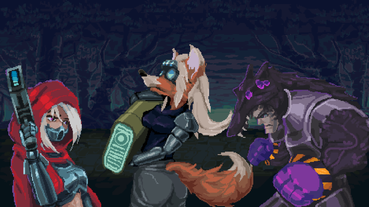 Общая тема хакатона — киберсказка, и здесь концепция читается без труда — киберпанк-мир с прямым заимствованием знакомых сказочных персонажей. В этой интерпретации Красная Шапочка снова идёт к БАБушке, сражается с волками и сталкивается с более серьёзным злом. От жанра киберпанка тут мы встречаем технологически угнетённый мир, высокотехнологичное оружие, импланты и... комплементацию человечества?
