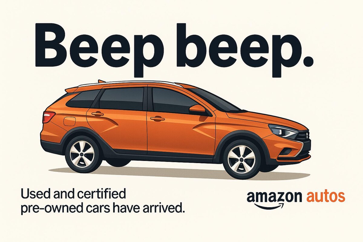 В неожиданном повороте событий американский гигант Amazon использовал Lada Vesta SW Cross в своей рекламе — притом что эта модель даже не продаётся в США! Как Lada попала в рекламу Amazon? На официальном сайте Amazon в разделе Amazon Autos (новый сервис по продаже подержанных авто) появилась публикация с ярко-оранжевой Lada Vesta SW Cross. При этом: * Lada официально не представлена в США — ни новые, ни подержанные модели. * Сервис Amazon Autos пока работает только с Hyundai (и только в Лос-Анджелесе). * Откуда взялось фото? Возможно, это случайный сток или ошибка маркетологов. Почему это забавно? * Lada в США — экзотика, как «матрёшка в Техасе». * Vesta SW Cross — не самый ожидаемый автомобиль для американской рекламы (но выглядит стильно!). * Ждём реакции АвтоВАЗа — может, решат выйти на рынок США через Amazon? Что это за сервис Amazon Autos? Пока это пилотный проект для продажи подержанных авто через дилеров. Сейчас доступны только Hyundai, но в будущем список может расширить