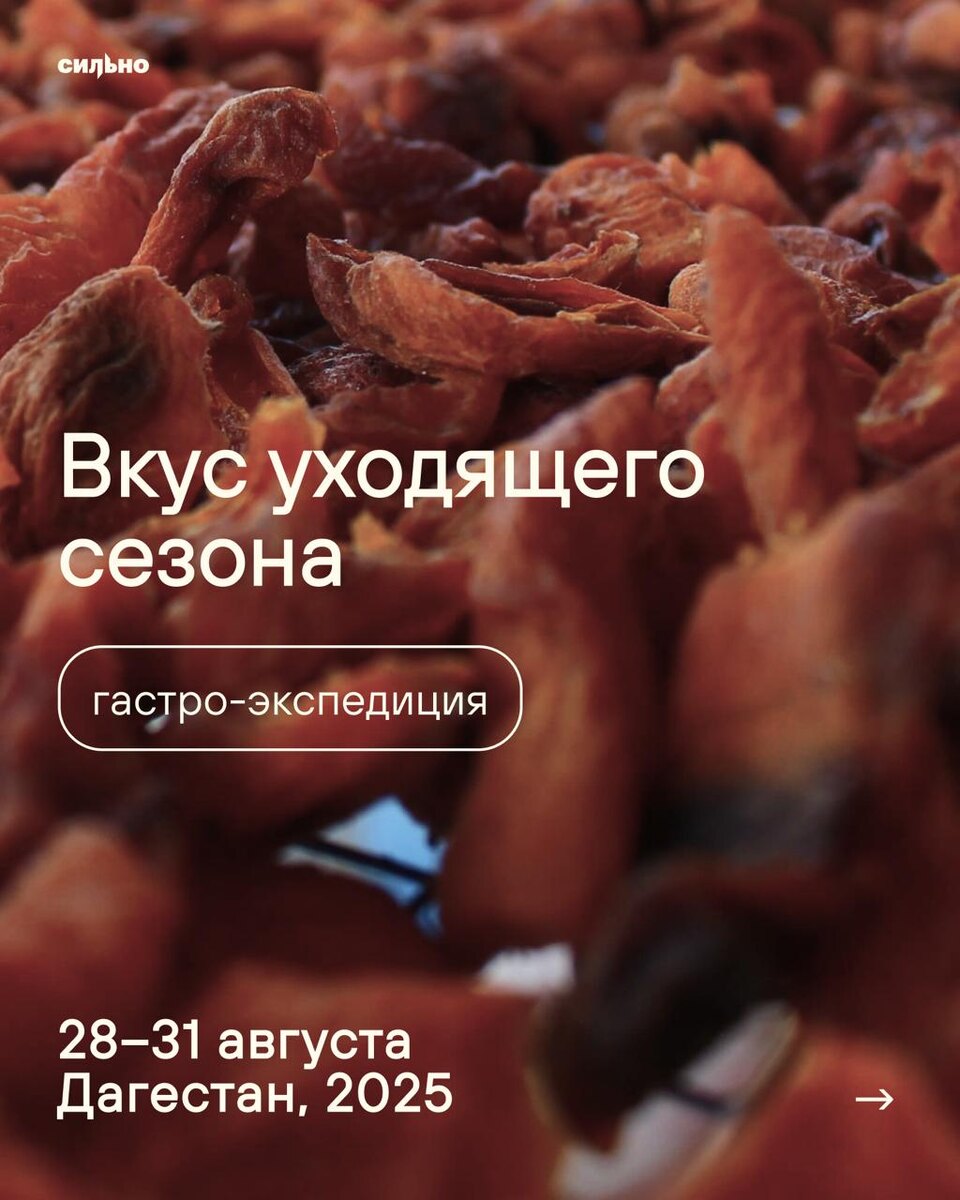 🐇 Урбеч, ботишал, чуду, буза, бухух, курзе… это не просто набор слов, а вкусы не похожие ни на что. Открываем сезон с новой темой для широкого исследования — гастрономия, как язык культуры. Приглашаем вас отправиться с нами полевую гастрономическую экспедицию «Вкус уходящего сезона» по Дагестану. Проводим лето в компании рестораторов, фермеров и местных жителей, которые щедро делятся не только вкусами, но и своими историями, традиционными рецептами. Вы узнаете, как локальность раскрывается через ландшафт и гастрономию. Увезете рецепты, образы, новый гастрономический опыт. А может быть, исследовательский материал, который станет частью вашего будущего проекта. 28–31 августа 2025 времени мало, принимаем решение быстро ;) Что нас ждет: 🌟 Знакомство с гастро-картой Махачкалы 🌟 Визит на сыроварню на базе агро-университета 🌟 Поездки в фруктовые сады и на горные производства 🌟 МК по приготовлению абрикосовой каши и других локальных блюд 🌟 Исследование аграрных ландшафтов и рукотвор