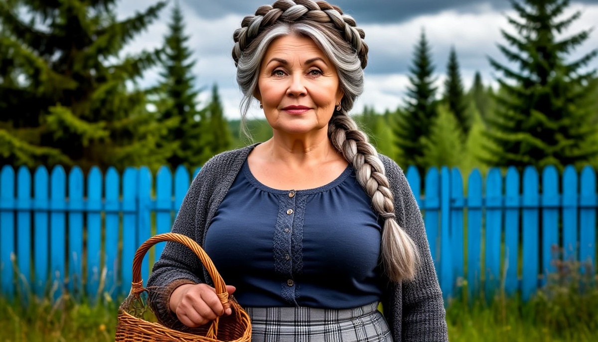 «Сейчас я буду кушать! Сейчас меня покормят!» ― радостно пело моё подсознание голоском мультяшной Маши, когда за синей калиткой многообещающе замаячил чей-то силуэт. Но это оказалась не Глашка с обещанным мне обедом, а приятной внешности женщина возраста поздней осени. Одета она была в вязаную серую кофту поверх тёмно-синей блузки и клетчатую серую юбку до пят, из-под подола которой при ходьбе выглядывали глянцевые мыски резиновых калош. На голове незнакомки красовалась корона, свёрнутая из светло-русой с проседью косы. Очень толстой и очень длинной косы, насколько можно было судить по высоте причёски.