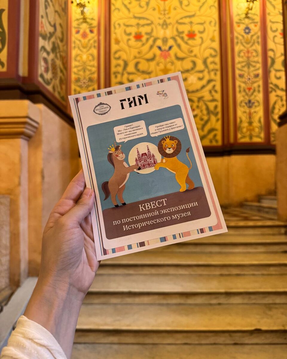 Вчера были на очень классном мероприятии, которое организовали «Кафе Пушкинъ» и Государственный Исторический Музей в рамках запуска гастрономического фестиваля Set-o-mania. Начнем со стыдного: я впервые за 19 лет жизни в Москве побывала на постоянной экспозиции в Государственном Историческом Музее. Я посетила там миллиард выставок, но до постоянной никогда не доходила. И после этого расскажите мне, что все эти «скидочка действует только сегодня» не работают… В закрытом музее для детей устроили мини-экскурсию и квест! Всем раздали листовки и нужно было найти разные объекты. В конце юных искусствоведов ждали в подарок тематические наклейки и бранч в «Кафе Пушкинъ» у фонтана в ГУМе. Я закрыла гештальт и таки попробовала медовик роза -личи, который в прошлый раз у меня нагло увели из-под носа. Это было вкусно. Оливье в «Пушкине» я в принципе обожаю и готова им одним питаться, а латте в стакане из гжели заставил мое сердце биться чаще. Потом правда мое сердце еще два раза вчера билось ча