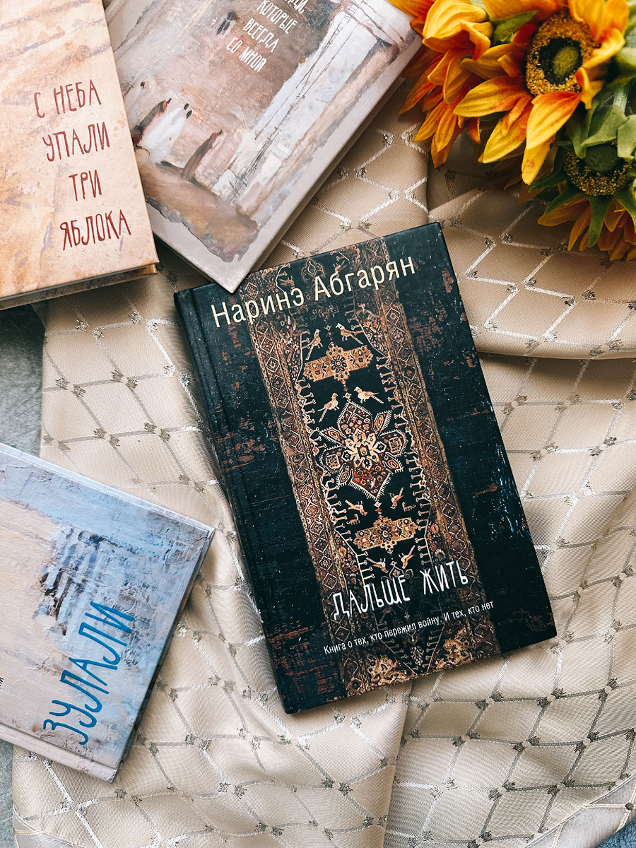 Страшная, необычная книга Абгарян "Дальше жить": читателя обволакивает тепло южного солнца, окутывает аромат восточных специй, но, вдруг, правда жизни окатывает ледяной водой, руки треснутся и слезы подступают. Постепенно разрозненные рассказы о жизни небольшого поселения Берда начинают создавать единое повествование, словно нити образуют красочный узор армянского ковра: второстепенные герои становятся главными, общие темы, повторы деталей. Так постепенно проступает авторский замысел цикла – рассказать о войне в Нагорном Карабахе без пафоса и паразитирования на теме, но с уважением к силе духа и бытовому героизму. «В семье Агапи никогда не говорят о войне, может, потому, что знают о ней всё. Что она имеет обыкновение начинаться, но не заканчиваться никогда. Что сначала она разрушает дома и забирает мужчин, а потом, когда утихает, напускает неизлечимые болезни на женщин. Следом, вдоль поглумившись над взрослыми, она уводит в потусторонье тех молодых, которые не справились со страхом. Во