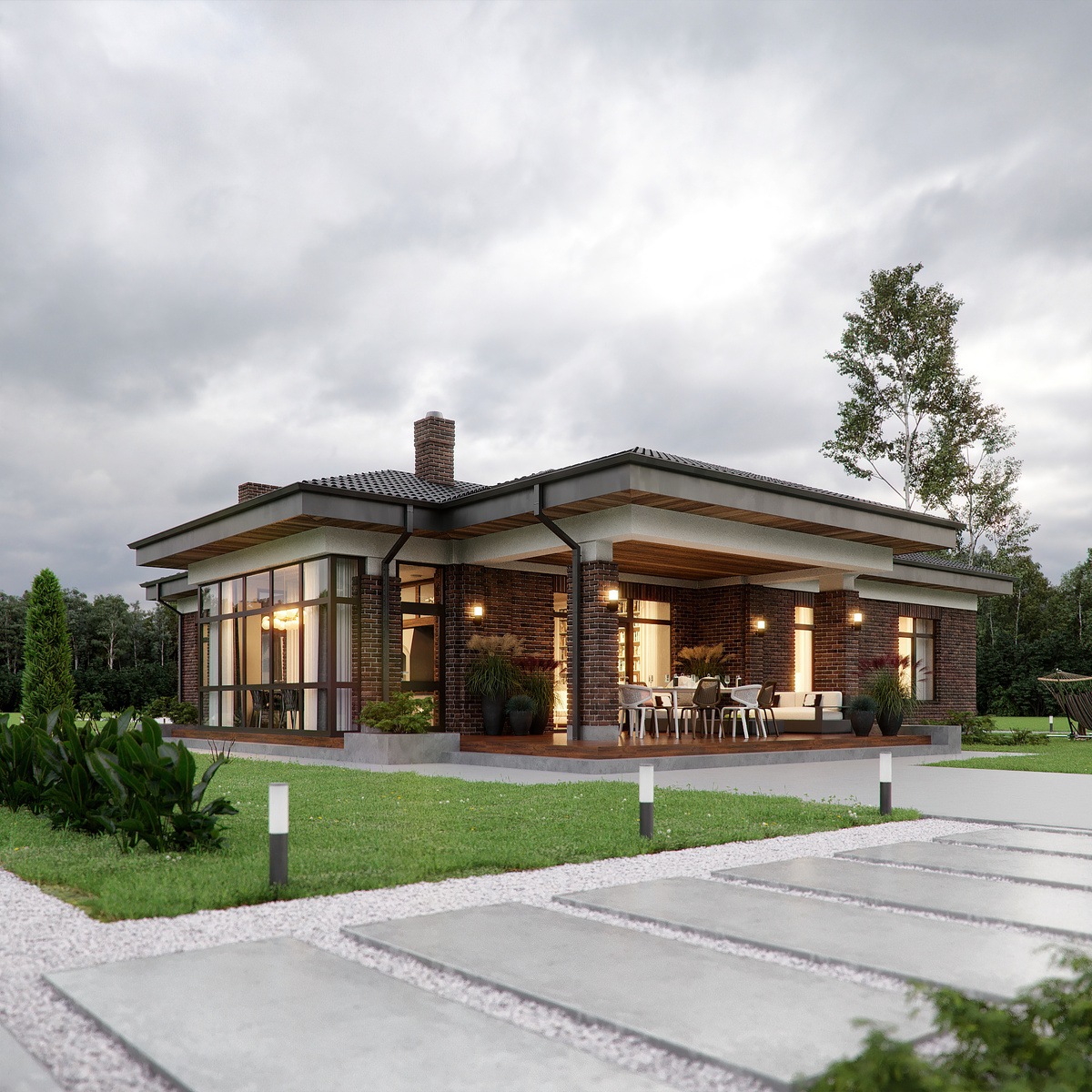 Проект «Ситники» от компании Zames. — это пример того, как даже на ограниченной площади можно создать дом, полностью отвечающий потребностям небольшой семьи. Давайте посмотрим, почему подобная планировка идеально подходит для комфортного проживания 3 человек под одной крышей. По традиции начнем с этажности. Проект «Ситники» представляет собой одноэтажный дом и для семьи из трех человек этого более чем достаточно. Отличительной особенностью этого проекта является продуманная парковочная зона для двух хозяйских автомобилей. Первый автомобиль размещается в гараже внутри дома, второй — рядом под навесом. Благодаря такому подходу удаётся сэкономить полезное пространство и обеспечить защиту обоих автомобилей от неблагоприятных погодных условий. Гараж также может использоваться в качестве помещения для хранения любых автомобильных деталей и аксессуаров. Например, с собственным гаражом вам больше не придется при каждой смене сезона ломать голову, где оставить на хранение летнюю или зимнюю рези