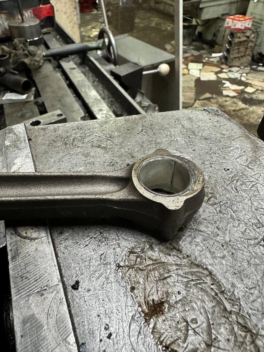 Замена втулок шатунов. Ремонт ВГШ (Верхняя Головка Шатуна). Выполняем ремонт шатуна, после промера выявлено, что зазор от пальца слишком большой (на легковых авто до 0,01 норма, если больше, то в ремонт). Фото 1. ДО. Родная втулка на месте. Фото 2. Выбили втулки. Фото 3. Забиваем новую втулку. Обычно либо молотком, либо задавливаем в тисках. Фото 4. Шатун установлен на координатно-расточной станок. Будем растачивать втулку под палец. Видео 5. Процесс расточки. Фото 6 и 7. Шатун готов. Зазор на легковом авто делаем пол соточки (0,005). Подписывайтесь, впереди много интересного! #шатун #ремонт #втулка