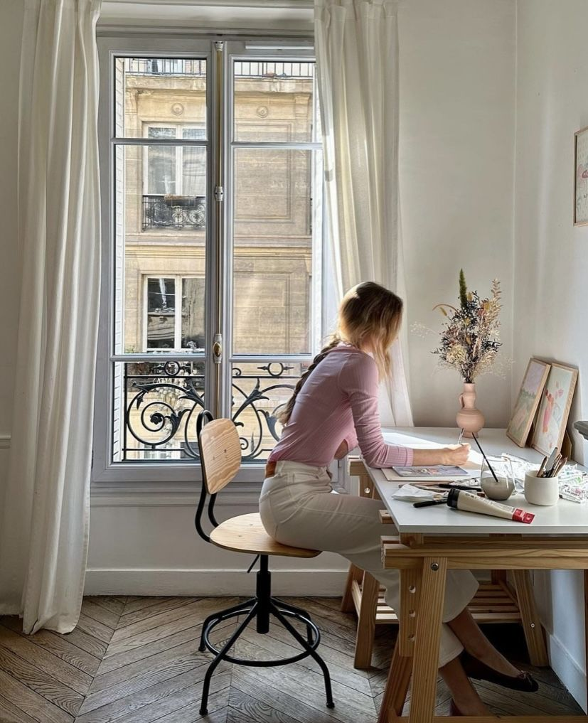 С регулируемой высотой, чтобы стол рос вместе с ребенком, и хорошо освещался — потому что ничто так не мотивирует, как красиво и удобно устроенное рабочее место!