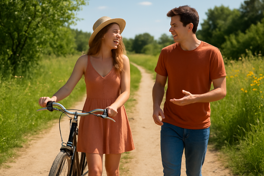Молодые люди встали, Влад помог Томе вытащить велосипед из кустов и они пошли по дороге, весело болтая и смеясь.