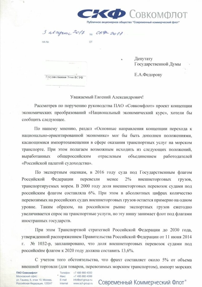 В связи с этим ответ Совкомфлота на предложение депутата Евгения Федорова о рассмотрении концепции «Национального экономического курса» в 2017 году видится как «письмо из прошлого» — с тех времен, когда мир и баланс сил были устроены совершенно иначе. Очень интересно посмотреть, как же изменился этот баланс сил на сегодняшний день.