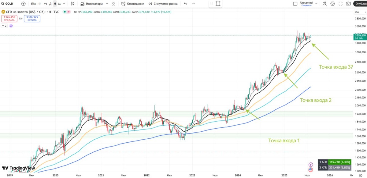 🥇Золото. Третья точка входа за пару лет! Видим рост ваших реакций в группе и пульсе на вчерашний пост про техническую составляющую точки входа. Сегодня на живом примере покажем уже готовую точку входа по нашей стратегии. Речь пойдет о золоте! Фундаментальные причины для роста золота сохраняются. Их мы разбирали не раз, но если вкратце: 🟡Новые пошлины. Инвесторы по всему миру не очень довольны Трамповскими методами нагнать шума и неопределенности. 🟡Слабость доллара. Индекс DXY продолжает снижение, Трампу нужен более слабый доллар для работы с госдолгом. 🟡Снижение ставок. Рано или поздно мы увидим снижение ставки ФРС, а это плюс для многих инструментов, в том числе для золота. 🟡Давление на ФРС. То как Трамп открыто давит на ФРС ставит под сомнение законодательные процессы США. Вот мировые ЦБ с крупными инвесторами и тарятся золотом уже второй год к ряду. А Минфин с завтрашнего дня будет меньше продавать золота в рамках бюджетного правила. Но сегодня - больше про технику. Вспоми