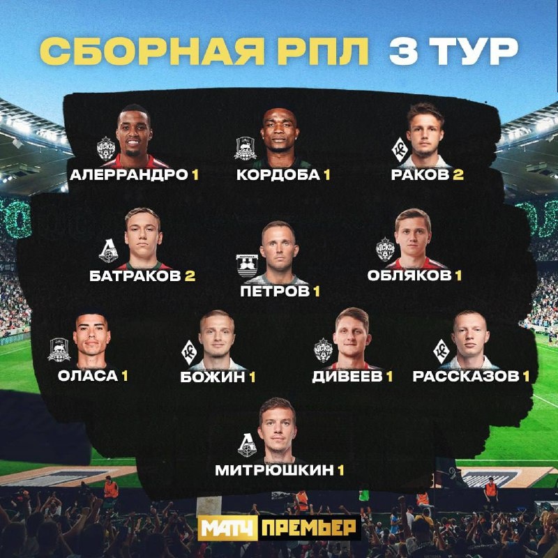 ⚽️ СБОРНАЯ ТУРА Илья Петров в составе сборной третьего тура Мир РПЛ по версии Матч Премьер 🦬