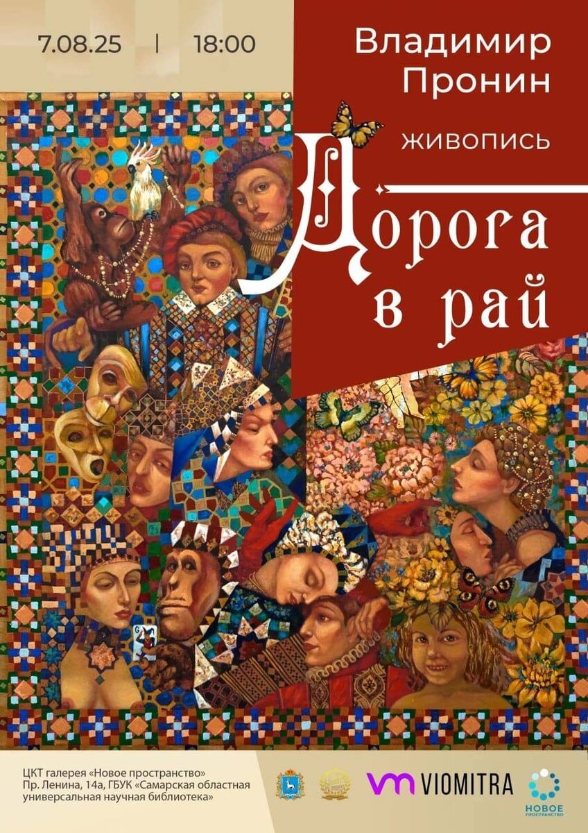 🎨 Открытие выставки Владимира Пронина «Дорога в рай» — уже завтра! Друзья, с радостью приглашаем вас на важное событие в мире искусства! 📅 Уже завтра, 7 августа, в 18:00 состоится открытие выставки «Дорога в рай» — новой экспозиции одного из самых ярких резидентов ART.VIOMITRA, художника Владимира Пронина. 🌟 Владимир Пронин — основатель авторского направления «орнаментальный неосимволизм». Его живопись — это тонкое переплетение реализма и декоративности, насыщенное золотыми узорами, цветными орнаментами и символами. 💫 Авторская техника ОРНЕОС построена на точном математическом расчете и визуальной гармонии. Повторяющиеся элементы, вплетенные в узоры, формируют образы людей, животных, птиц и фантастических существ — словно оживающие мифы на холсте. 🎹 Вечер дополнит живая музыка: специальная гостья — виртуозная пианистка Ольга Ерофеева — подарит гостям уникальное музыкальное сопровождение прямо в галерее. 📍 ЦКТ галерея «Новое пространство» г. Самара, пр. Ленина, 14а (ГБУК «Са