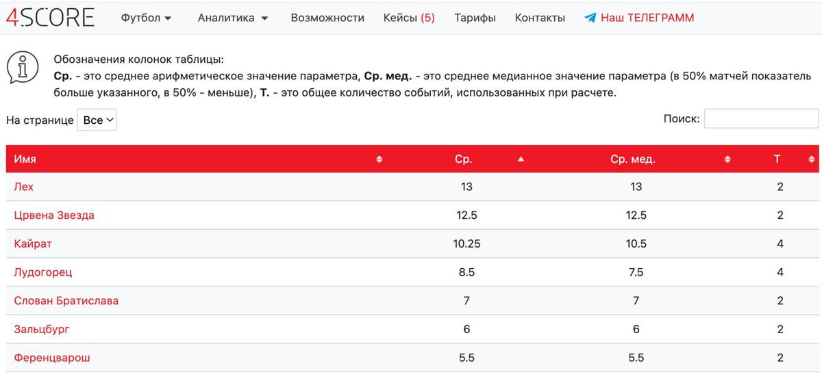 📈Команды сегодняшних матчей, у которых уже есть статистика УГЛОВЫХ в этом сезоне-СУММАРНЫЙ ТОТАЛ