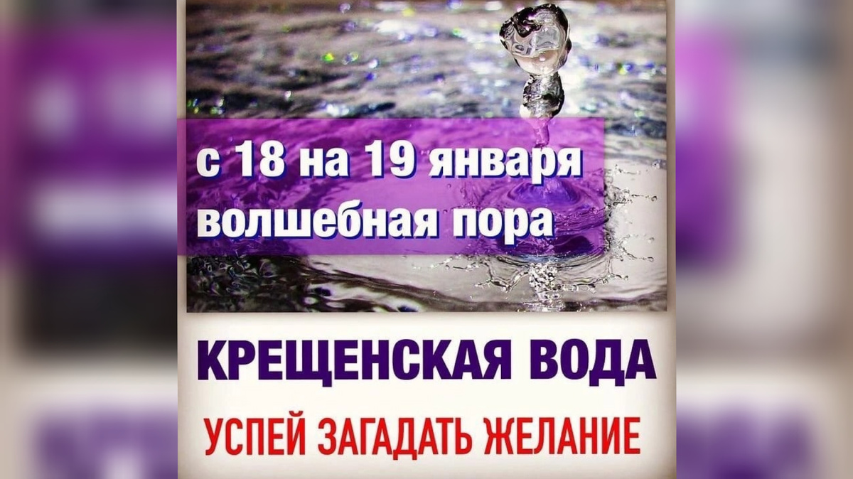 КРЕЩЕНСКОЕ ВОЛШЕБСТВО ЗАГАДАЙ ЖЕЛАНИЕ 😍Для тех, кто не успел ЗАГАДАТЬ ЖЕЛАНИЕ в Старый Новый год, ещё есть добротный ШАНС сделать это в КРЕЩЕНИЕ. ————— 🍶Рецепт загадывания желания на БАНКУ С ВОДОЙ в КРЕЩЕНИЕ. Тебе понадобится: 1️⃣ Ёмкость с водой (Банка/бутылка от 1,5–3 л. Не надо больше. Вода и водопроводная тоже пойдёт, если нет другой.) 2️⃣ ЛУННЫЙ СВЕТ. (Это важное условие. Если луны не будет видно, то метод, скорей всего, не сработает.) 3️⃣ Возможность выйти на улицу или хотя бы открыть окно/выйти на балкон. (Надо, чтобы Свет Луны падал на тебя и на воду!) 4️⃣ ВРЕМЯ проведения этого обряда строго с 00:00 до 03:00. Надо успеть уложиться в этот период. 👉🏻Делай так: • Набери в ёмкость воды. Выйди на лунный свет. Держи банку в руках и говори примерно такие слова: «Матушка ВОДА, Матушка ЛУНА — Силы Ваши явите, в осуществлении дела моего помогите (укажи в каком).» • Постой так 1–5 мин. • Банку с Водой закрой. Спрячь в тёмное, укромное место от чужих глаз. • По утрам, начина