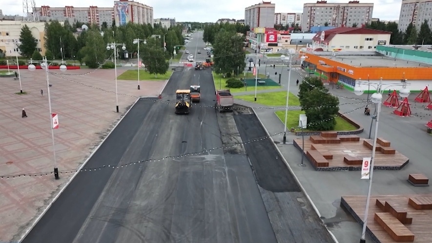 Дороги Ханты-Мансийского автономного округа признаны одними из лучших в стране по результатам рейтинга Центра экономических исследований за 2024 год. А текущий для региона станет годом дорожных преобразований. В Югре уже запущена масштабная кампания. В планах построить и привести в нормативное состояние более 300 километров асфальтного полотна. На улице Гагарина в окружной столице уже укладывают новый асфальт. Участок за участком дорога преображается. Работает техника, где-то еще срезают старое покрытие, а местами уже все готово. Ремонт продолжается по графику и завершится к началу сентября. В Ханты-Мансийске в программу капитального ремонта и строительства на этот год включено порядка 30 километров асфальтного покрытия. Это можно сравнить с десятилетним планом всех работ, которые проводились в городе ранее. Ежегодно специалисты проводят ямочный ремонт дорожной сети в Лангепасе. Прежде чем залатать образовавшуюся на полотне выбоину, проводится целый комплекс подготовительных мероприятий. Этим летом дорожники приступили к частичной замене асфальта. Площадь ремонтных работ составляет более 4 тысяч квадратных метров.