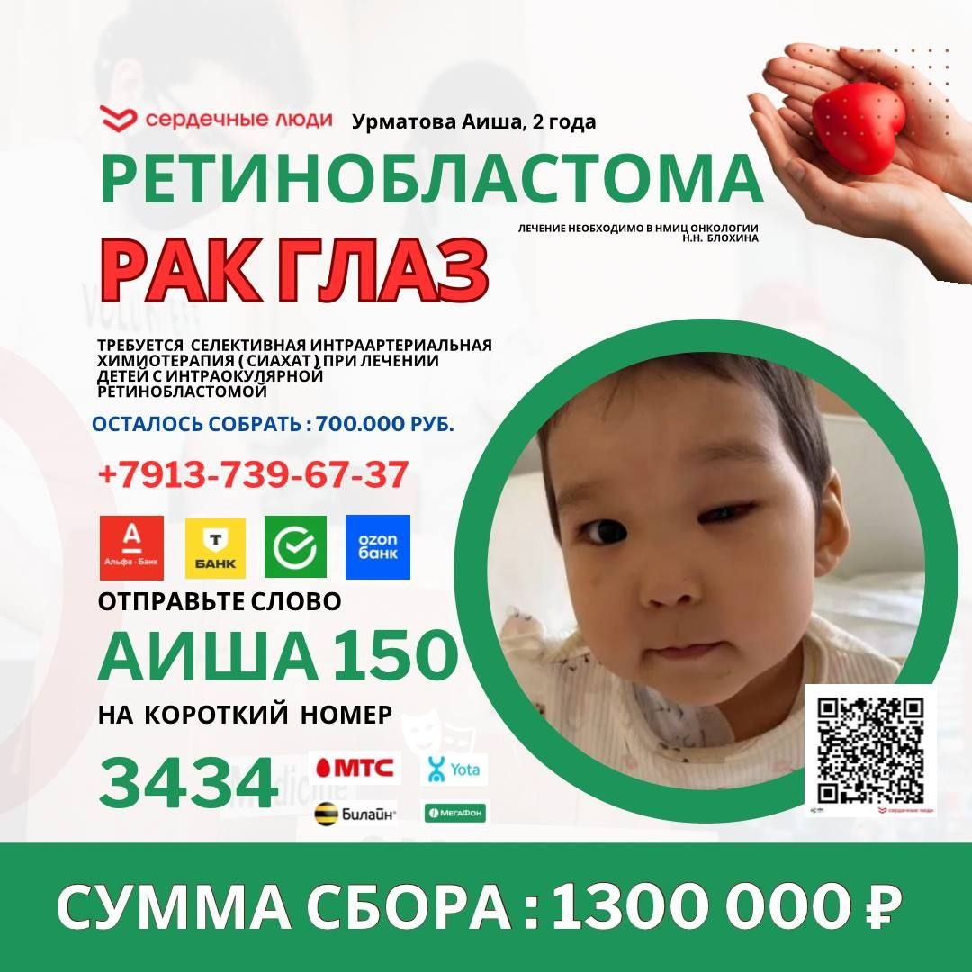 Мы верим в чудо, как и маленькая Аиша! Последние сбора и мы опускаем руку помощи для ребёнка, время летит мимолетно продвижения почти нет, очень жаль, что национальность и человеческая жадность сыграла свою роль. Мы уже выложили видео обращение мамы, папы и бабушки Аиши, она слёзно умоляют о помощи, но вам этого мало. Мало, чтобы помочь репостом завершить сбор...Но, Господь милосердный и поможет нам закрыть сбор, если вы неравнодшны, если хотите спасти ребенка..Просто помогите !