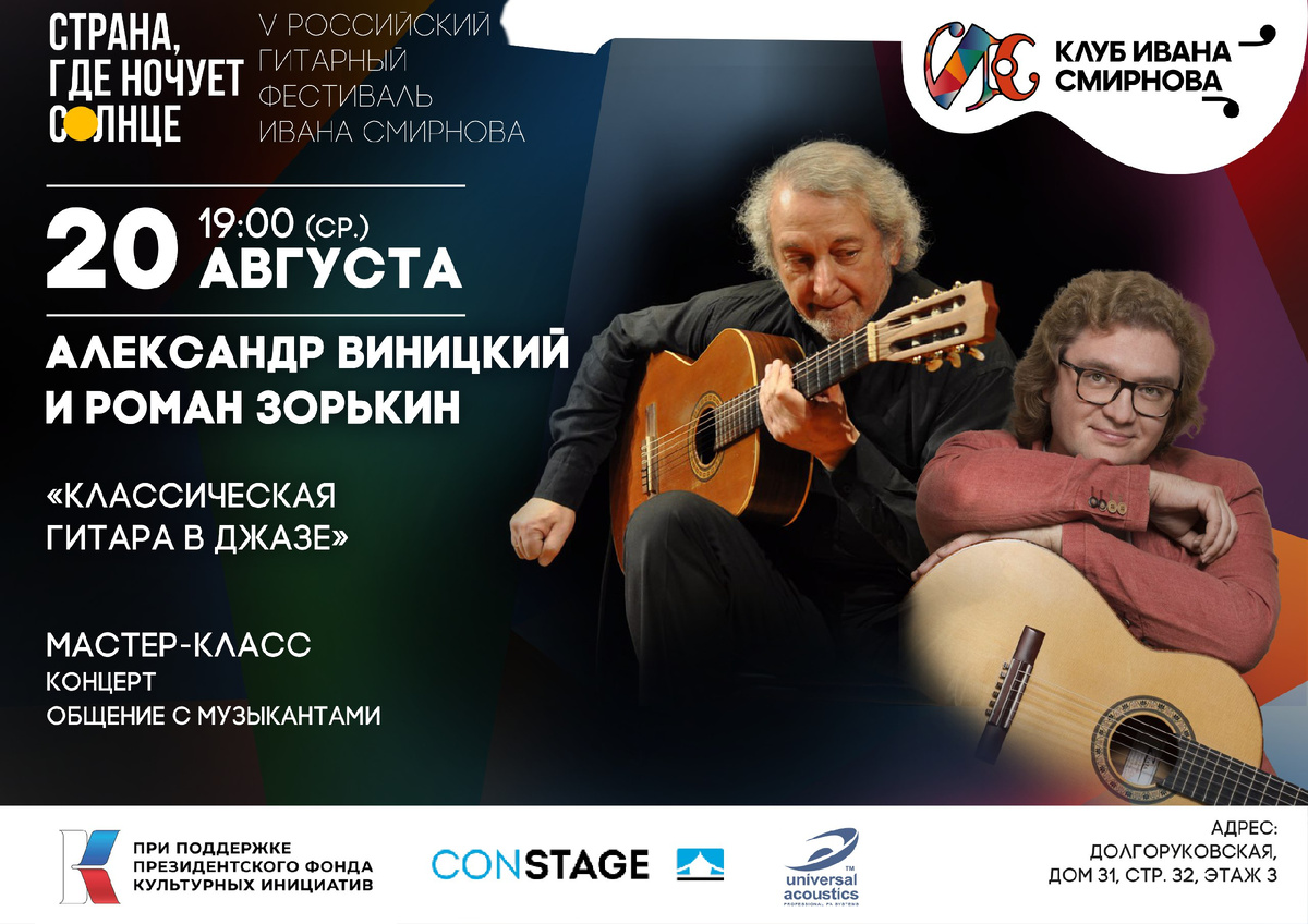 Александр Виницкий и Роман Зорькин. Гитарный мастер-класс, концерт и общение 20 августа 19.00.