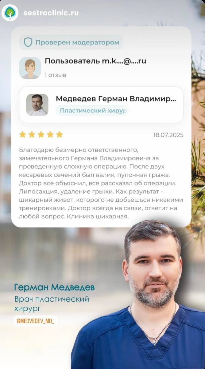 🖇Делюсь отзывом моей пациентки После двух кесаревых сечений у неё остался выраженный валик и пупочная грыжа. Мы провели липосакцию и удаление грыжи – в результате получился ровный, красивый живот, которого не добиться только тренировками. Спасибо пациентке за доверие и отзыв! 💜 Записаться на консультацию 📨 Можно здесь 📱 По телефону +7 905 288 38 39 〰️〰️〰️〰〰 #маммопластика #вопрос #пластика #пластическийхирург #клиника #омоложение #абдоминопластика #увеличениегруди #блефаропластика #консультация #эстетика #отзыв