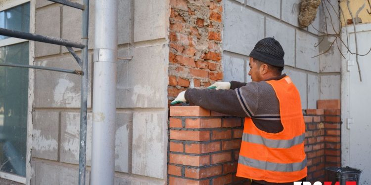Капитальный ремонт дома № 11 по улице Карла Маркса, являющегося объектом культурного значения, идёт полным ходом. В прошлом году были завершены работы по замене перекрытий крыши, а сейчас рабочие занимаются восстановлением фасада и декоративных элементов. В июне был произведён демонтаж четырёх аэробных балконов: два с парадной стороны здания и по одному с каждого торца. Они находились в аварийном состоянии, и сохранить их в таком виде было невозможно. Сейчас строители приступили к возведению новых конструкций. — В первую очередь мы занялись подготовкой основания будущих балконов. Вырыли котлован, выполнили ленточный фундамент, залили плиты основания. Около двух недель назад начали кирпичную кладку, и сейчас возводим первый этаж. Большое внимание уделяем прочности конструкций. Между первым и вторым этажом предусмотрены плиты перекрытия, затем будет идти арочный свод и непосредственно балкон — они являются важной частью исторического облика дома. С торца дома, со стороны рынка, балкон и