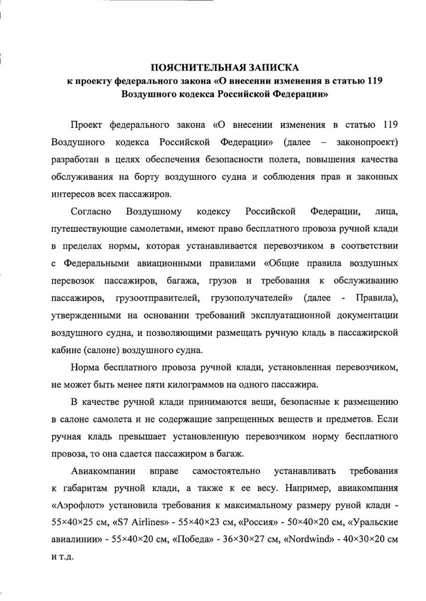 ⁉️Совместно с коллегами Ниной Останиной и Ярославом Ниловым разработали законопроект, которым предлагаем внести изменения в статью 119 Воздушного кодекса и установить ответственность авиаперевозчика в размере не более десяти минимальных зарплат за порчу ручной клади. Это не фиксированная сумма, а плавающий показатель, который будет расти вместе с МРОТ. Такой подход защитит пассажиров от потерь, мотивирует авиакомпании лучше контролировать размещение ручной клади, создаст равные условия для всех. 💭Сейчас закон ограничивает ответственность авиакомпании за порчу ручной клади 11 тысячами рублей — суммой, установленной ещё в 2007 году. За 18 лет она так и не проиндексирована, хотя цены выросли в разы. Наверняка многие сталкивались с ситуацией: вы садитесь в кресло, а над вами уже чей-то огромный чемодан, который кто-то положил по дороге к своему месту. Тот, кто пришёл первым, занимает все свободные полки, а вы, даже если купили удобное место, остаётесь с сумкой на коленях. Нередко чужие