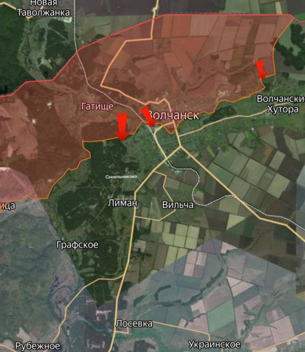 🪖 Харьковское направление На данном участке фронта продолжаются тяжёлые бои, но наши подразделения расширяют плацдарм на левом берегу р. Волчья и в лесу возле Синельниково. Противник продолжает переброску дополнительных сил с целью не допустить дальнейшего продвижения ВС РФ. В р-не н.п Гурьев Казачок подразделения ВС РФ обнаружили во время разведывательных мероприятий миномёт противника около российской границы. Наши дроноводы используя дрон на оптоволокне КВН и FPV-дрон, разгромили позицию врага вместе с минометом. Волчанский и Липцовский участки На Липцовском участке фронта без существенных изменений. ВСУ заводит новые силы, чтобы заменить потери. На Волчанском участке ВС РФ продвинулись в Западной части города на 1200м. Также есть продвижение в лесах севернее Синельниково, более чем на 700м. Великобурлукский участок На участке фронта Меловое - Хатнее ВСУ пытаются вернуть утраченные позиции в р-не Меловое, мелкими группами и с помощью разведывательных БПЛА прощупывают нашу об