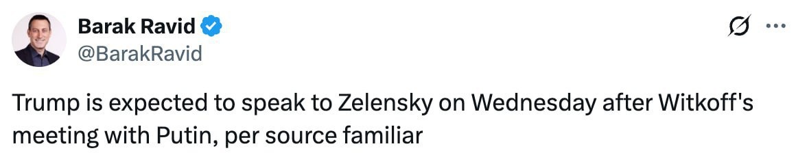 Трамп хочет провести телефонный разговор с Зеленским в среду после встречи Уиткоффа с Путиным, пишет журналист Axios