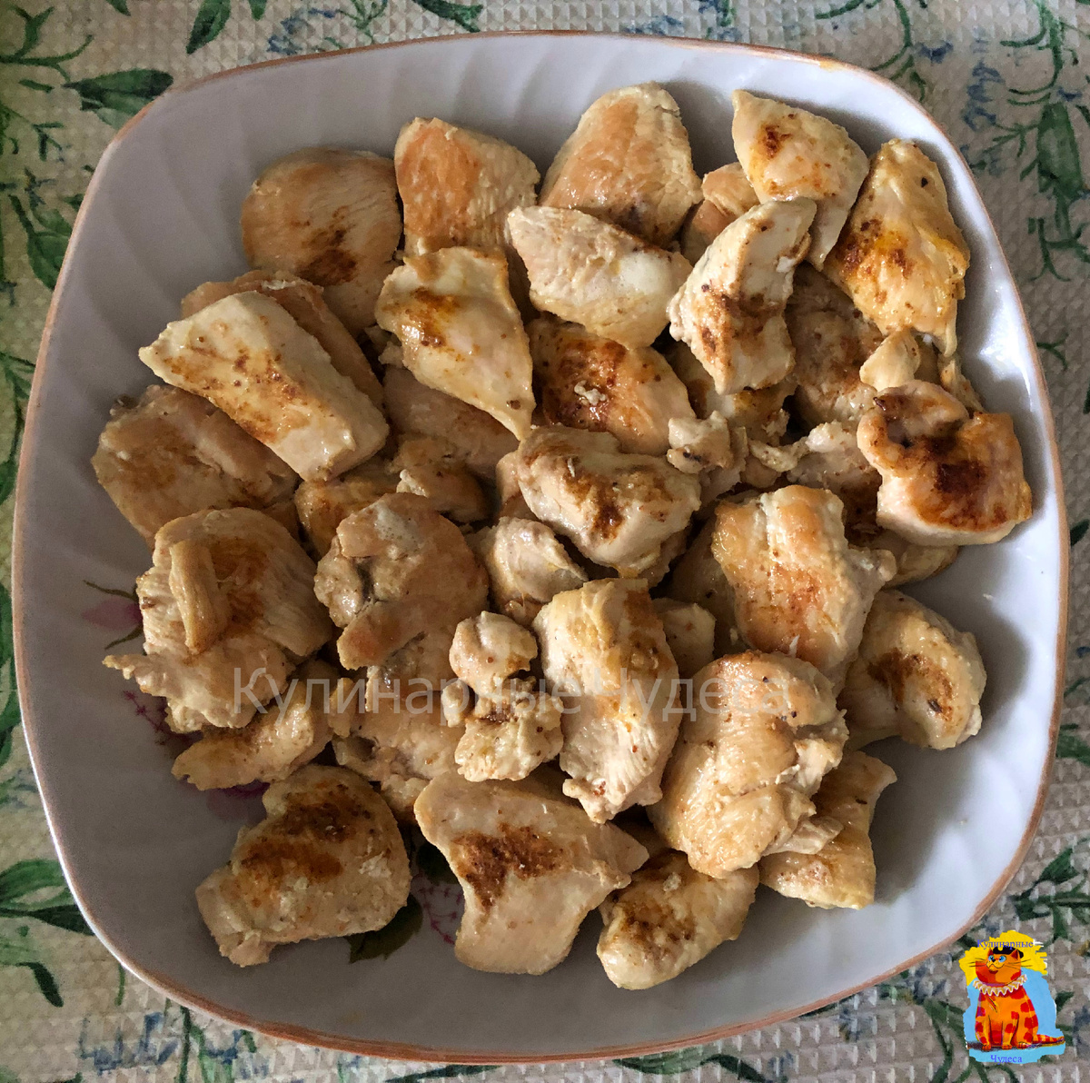 Предложенный рецепт универсальный, он подходит и для повседневного приготовления и для праздничного стола. Нежная курочка со специями хорошо дополняется любым гарниром или салатом. Курочка получается нежной, пряной. Чтобы она не подсыхала, закройте большую тарелку, на которой расположена курочка сверху тарелочкой поменьше. Ингредиенты: 1 кг. куриного филе, специи по вкусу, растительное масло для обжаривания. Способ приготовления: 1. Филе промойте, нарежьте средними кусочками. 2. Каждый кусочек натрите специями с обеих сторон. 3. На растительном масле обжарьте получившиеся кусочки. 4. Переложите кусочки в глубокую сковородку, налейте воды выше уровня кусочков, тушите 1 час. Не забудьте, наливать воду в сковородку по мере её выкипания, таким образом, чтобы кусочки курицы были в воде. Для приготовления курочки беру специи (приправу для курицы). Её состав: куркума молотая, паприка сушеная, кориандр (целый и молотый), соль, чеснок сушеный, пажитник молотый (шамбала), зелень сушеная (базилик