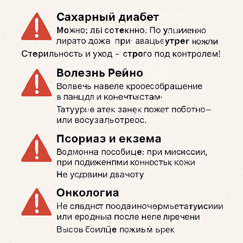 🧼 Стерильность и уход — строго под контролем! Это заболевание нарушает кровообращение в пальцах и конечностях. Тату в этих зонах может заживать плохо или вызывать осложнения.