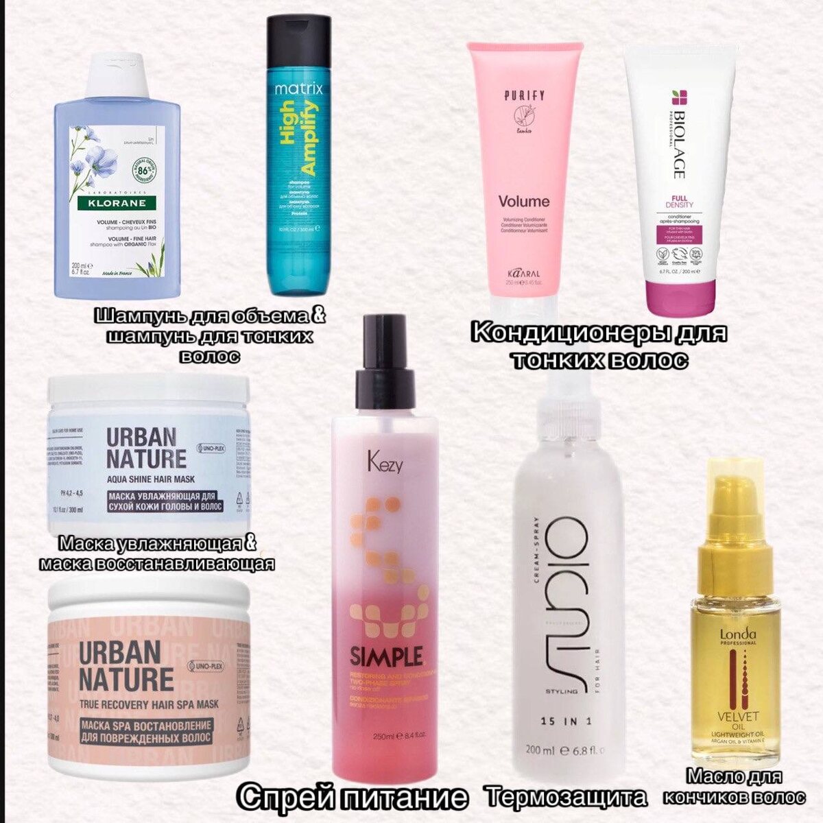 Очищение должно быть подобрано под тип кожи головы, я беру базовый шампунь и беру шампунь для тонких волос (пример на фото), или шампуни для объема (так как тонкие волосы обычно лишены объема) для чередования,чтобы не сушил длину.