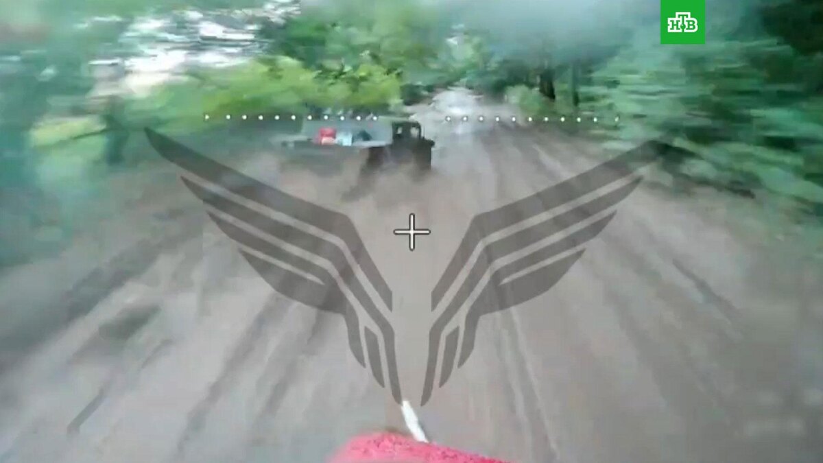 [ Смотреть видео на сайте НТВ ] Минобороны показало видео погони российского FPV-дрона за американской бронемашиной Humvee ВСУ. Как сообщили в ведомстве, разведка обнаружила американский броневик, который ехал по дороге около села Никольское в Сумской области. Оператор БПЛА центра «Рубикон» запустил ударный дрон и устроил настоящую погоню за бронемашиной. Водитель пытался удрать от беспилотника, совершая маневры уклонения, а сидевшие в автомобиле вэсэушники пытались сбить его из стрелкового оружия. К концу погони броневик несколько раз занесло, из-за чего он потерял скорость. В итоге беспилотник настиг машину и атаковал ее сверху. [ Смотреть видео на сайте НТВ ]