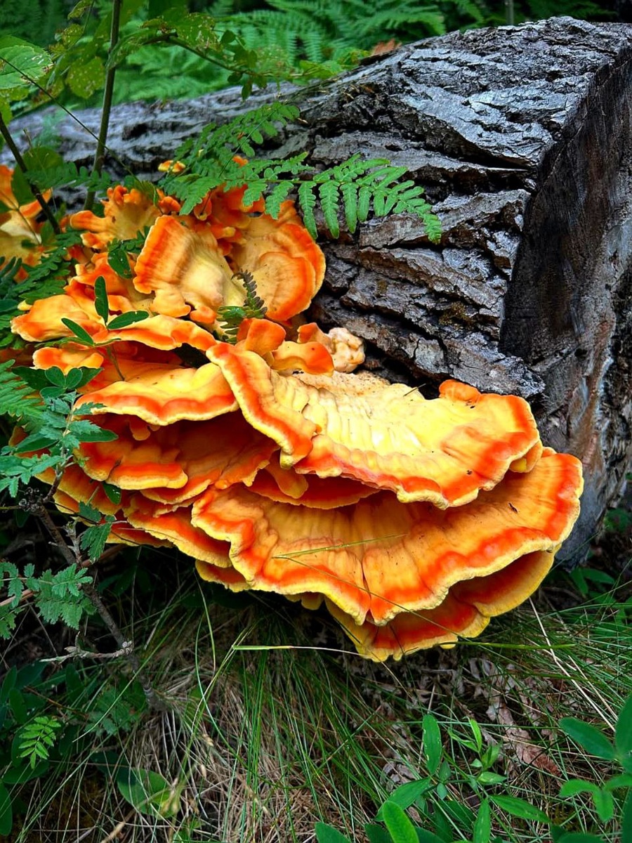 😍 Трутовик серно-желтый (лат. Laetiporus sulphureus) 🍄 Внешний вид ✨ Шляпка: крупная, вееровидная или полукруглая, иногда имеет неправильную форму, диаметром от нескольких сантиметров до 30 см и больше. Поверхность шляпки гладкая, блестящая, ярко-желтая или оранжево-желтая сверху, внутренняя поверхность пористая, кремово-белого цвета. ✨ Ножка: отсутствует или слабо выраженная, приросшая непосредственно к стволу дерева. ✨ Споры: белые, мелкие, овальной формы. ✨ Цвет меняется от светло-серно-желтого до темно-оранжевого. ✨ Запах слабый, приятный, фруктовый. 🌏 Где встречается? Трутовик серно-желтый чаще всего растет на живых и мертвых стволах деревьев различных пород, особенно широколиственных — дуб, бук, береза, осина, реже хвойных. Предпочитает влажные леса средней полосы России, лесостепь и южную тайгу. Распространён практически повсеместно в Европе, Азии, Северной Америке и Австралии. 🍽 Ядовитый или съедобный Трутовик серно-желтый относится к условно-съедобным грибам. Мо