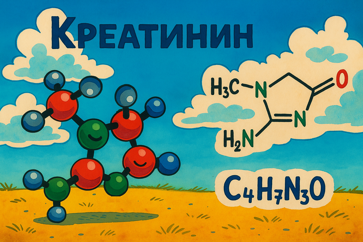 Креатинин — это продукт обмена веществ, образующийся в результате распада креатинфосфата в мышцах. Он выводится из организма почками с мочой, поэтому его уровень в крови часто используют для оценки функции почек и общего состояния обмена веществ.