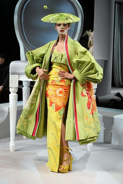 Например, Джон Гальяно создал коллекцию в восточном стиле весна 2007 для дома Dior. Это была яркая феерия и буйство красок и цветов. Ясное дело, что он не придерживался всех правил и церемоний, а создал своё видение. Несмотря на это, мы все равно узнаем эту китайскую изюминку, если можно так выразиться.