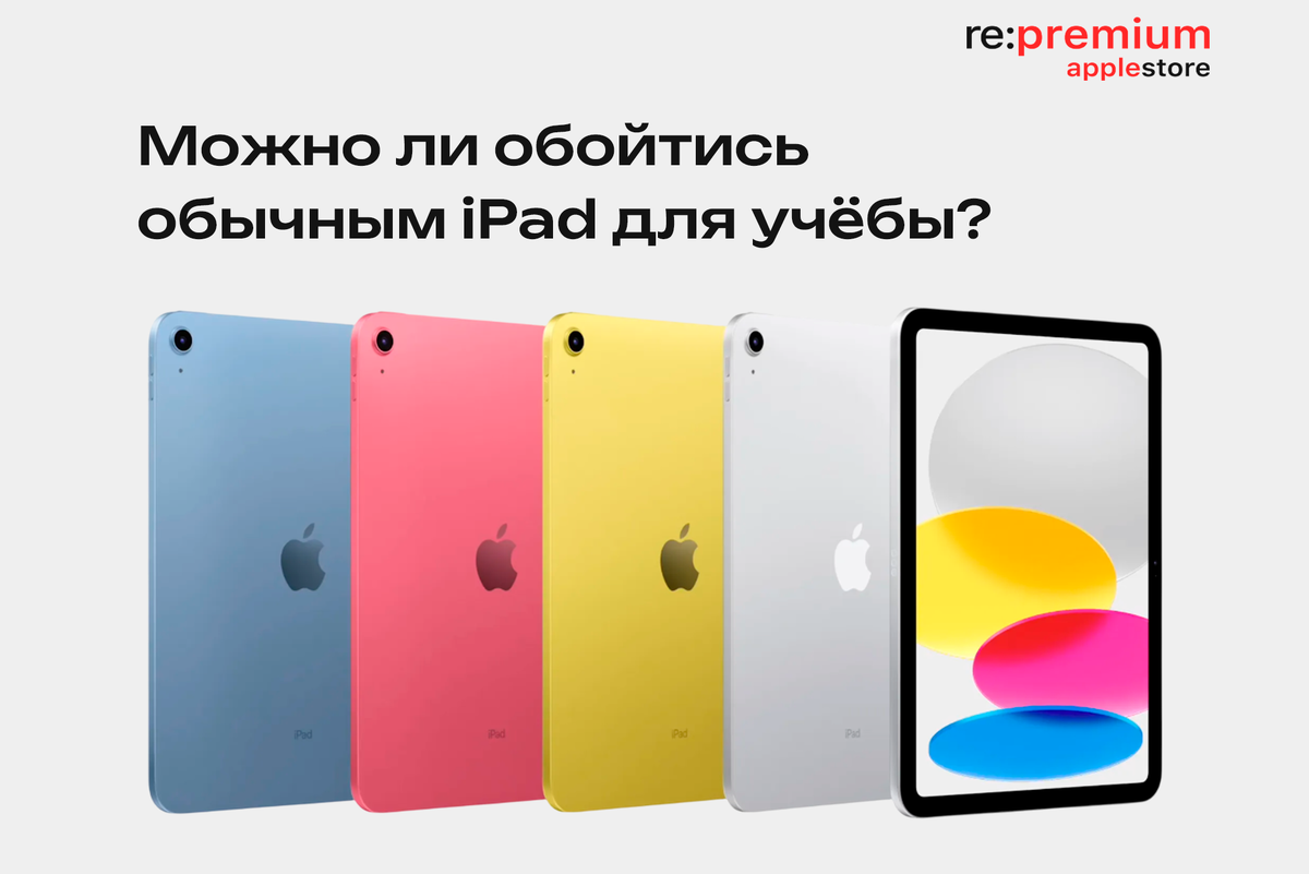 ✔ Участвовать в онлайн-занятиях Если же вы занимаетесь дизайном, монтажом или хотите максимальный комфорт — смотрите в сторону iPad Air. Pro стоит брать только для узкоспециализированных задач. А какой iPad используете вы для учёбы? Делитесь в комментариях! Подписывайтесь на re:premium в соцсетях: Telegram | VK | YouTube
